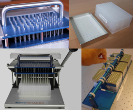 Deutz-System冷冻菌种复制器(Relicator)是为了快速、大量的进行冷冻菌种的复制,继而进一步提高通量筛选而开发的生物实验工具。主要用于从96孔-深孔板菌种保藏中快速取出菌种到新的96-深孔板中然后结合温控摇床,可以进行系列的微生物培养和筛选工作。目前应用于筛选大肠杆菌或酵母的克隆库,高通量药物筛选(高活性,高生产率的突变) ,高通量筛选新的酶活性或形成的次生代谢产物(异质和同质的人工菌种保藏) ,培养基优化等领域。