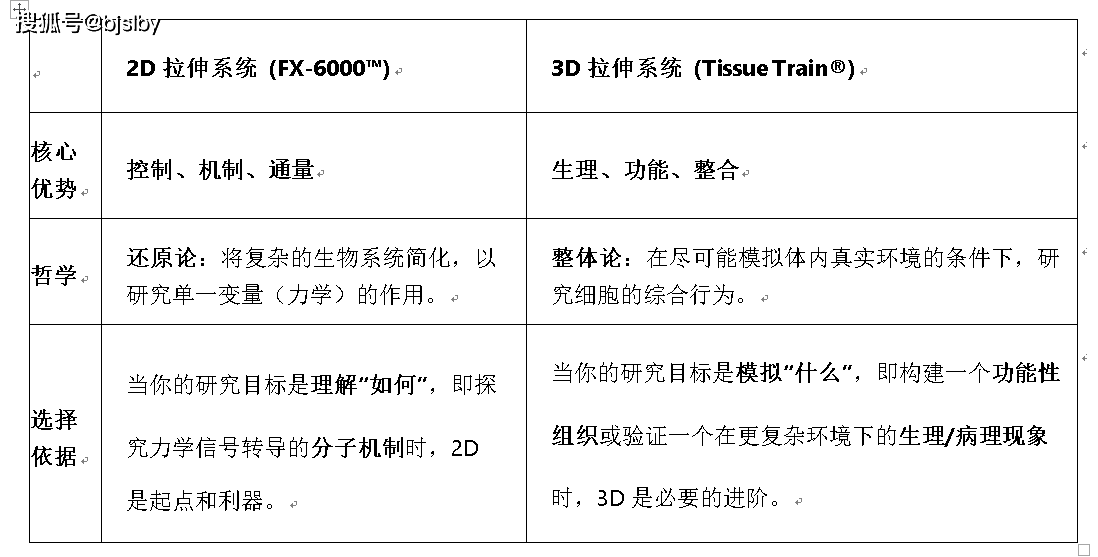 flexcell Tissue Train? Circular 3D等边轴牵张拉伸培养板 图 三、flexcell 2D与3D拉伸刺激加载的区别及各自的应用场景介绍1. flexcell 2D拉伸 o 培养模式: 细胞在二维的、平面的、可变形膜上生长(如硅胶膜或弹性塑料膜)。 o 加载方式: 系统通过真空拉伸该平面膜,使其发生单轴向、等双轴或循环应变。生长在膜上的细胞随之被拉伸。 o 核心特点: 细胞与环境(培养基/空气)直接接触,细胞间连接主要是平面的。 2. Flexcell 3D拉伸 o 培养模式: 细胞被包裹在三维的、具有厚度的水凝胶中(如胶原蛋白、纤维蛋白胶)。这个水凝胶被浇注在两个固定锚之间。 o 加载方式: 系统通过移动两个锚,直接拉伸整个水凝胶构件。包裹在三维基质中的细胞因此受到间接的、通过基质传递的力学刺激。 o 核心特点: 细胞被完包裹在三维细胞外基质中,细胞间连接是立体的、多方向的。