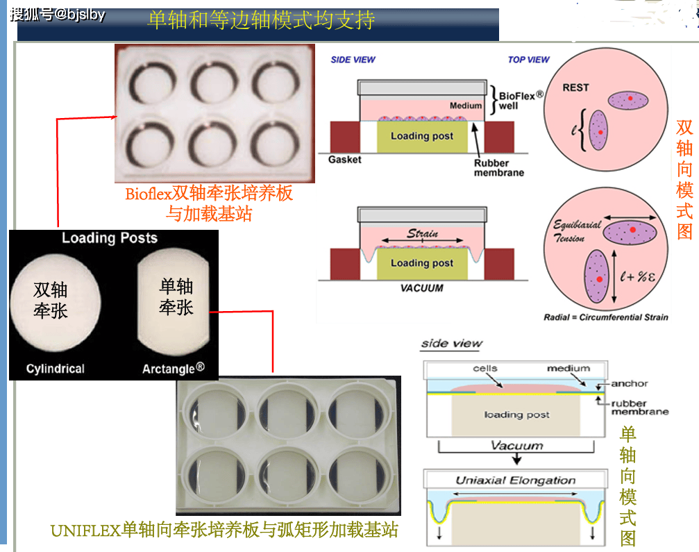 Flexcell 6000T Tension system 的2d/3d单轴拉伸、等边轴拉伸培养板系列 指导一、单轴向即uniaxial和等边轴即equiaxial拉伸刺激加载的区别及各自的应用场景有哪些?细胞单轴向拉伸和等边轴(等双轴)拉伸是两种常用的力学刺激模式,它们模拟了体内不同生理或病理条件下的力学环境。下面详细解释它们的区别、细胞响应以及各自的应用场景